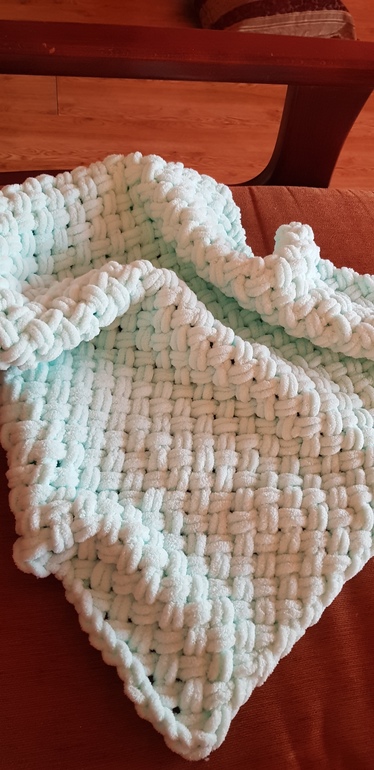 Я связала плед малышу! Долго выбирала, ч о бы изваять, но потом мой выбор пал на плюшевое облачко:) Выбирала долго, пряжу ждала тоже долго, а связала за день - вот такое волшебство.