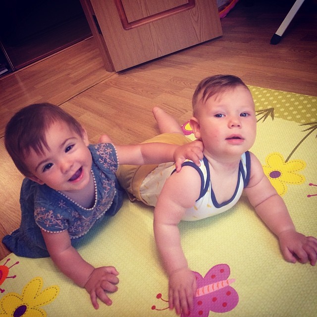 Спасибо!)) Они оба большуны, Маруся на год уж одежду носит, а Лёва ещё покрупнее, как и полагается, хотя и на две недельки помладше) Без выковыриваний и выдергиваний. Я боялась, что Маруся хуже щипаться будет, но она вроде поаккуратнее, чем со взрослыми, себя вела. Но всё равно своим напором немного Лёву огорошила)) Всё время его хватала, за что придётся, заползала на него) А Лёва нет, пару раз потрогал аккуратненько, а потом и вовсе стал от неё прятаться))) Она ещё и визжит оглушительно от радости))) У них темпераменты разные, она — холера холерик, он — флегматик. Я прям не знаю, что делать — детское общество обожает, но всех всё время распугивает)