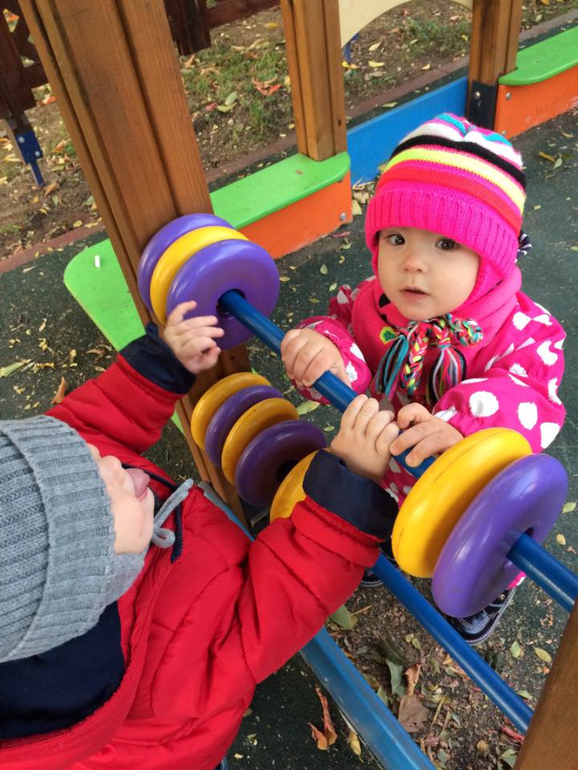 Из нового. В ~10 месяцев начала нормально хлопать ладушки, а не махать руками) Ну тут хвастать нечем))) Но всё же) Чуть позже начала махать "привет" и "пока". В 10 были первые шаги, в 10,5 пошла уже уверенно, теперь целыми днями нарезает круги по квартире, таская с собой своих котов или куклу. Красота! А главное, на улице стало просто в десятки раз проще с ней. Просто ходит, катает каталку (к своей интерес быстро пропадает, подрезает чужие), на днях купили ей коляску, тоже катает с удовольствием. Но вообще, новая сложность - немного поиграет со своей каталкой/коляской/мячом и бежит отбирать чужие)) Дитям пофигу, а маман танцует менуэт вежливости: "извините" - "да что вы, берите" - "мы поиграем и вернём" - "а вот нам ваша машинка понравилась" - бесконечный площадочный диалог. Мне надо купить магазинную тележку (всё равно она предпочитает в них сидеть, а не в коляске), сажать туда Марусю, и ссыпать мячи, каталки, машинки, всех цветов и размеров... Ну или просто дать ребёнку палку, пусть учится прокладывать дорогу в жизнь. А вообще, на площадке можно просто посадить её на качели и забыть о ней хоть на два часа (я не пробовала, но 20 минут - явно не предел. Уходит с качелей всегда с воплями).