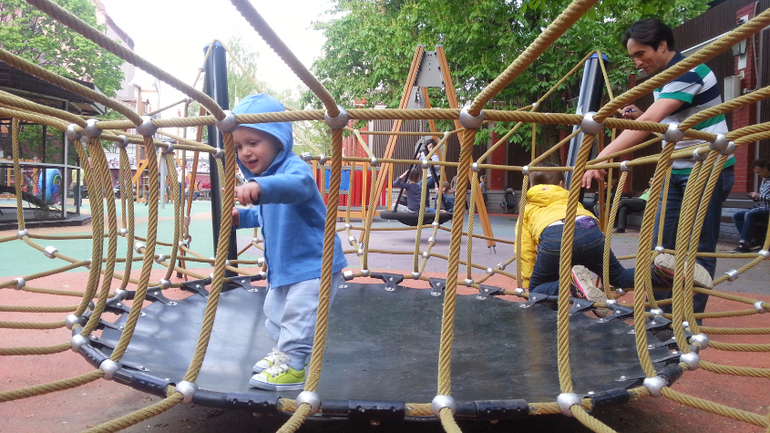 Кстати, желающие обучить ребёнка языкам с детства обнаружат на площадке дружественную среду - тут много детей иностранцев, проживающих рядом.