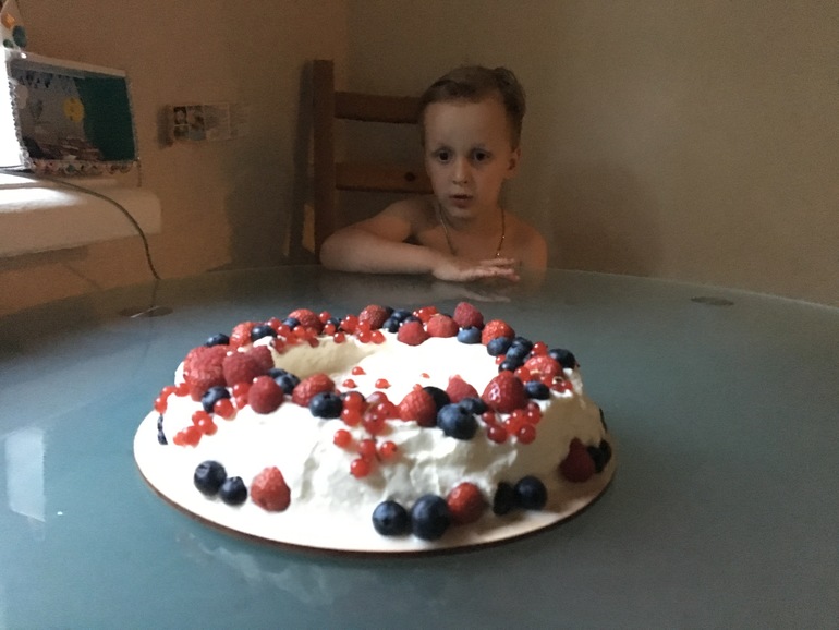 В этом году я решила попробовать сделать знаменитый торт «Анна Павлова», который Дима в каждое посещение заказывает в семейном ресторане недалеко от нашего дома.