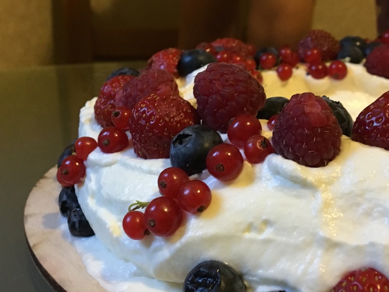 Надо сказать, что безе я вроде как не очень люблю и поэтому и не пекла. Но этот торт получился просто потрясающим благодаря удачному сочетанию сладкого воздушного безе, легкого сливочного крема и разнообразных ягод.