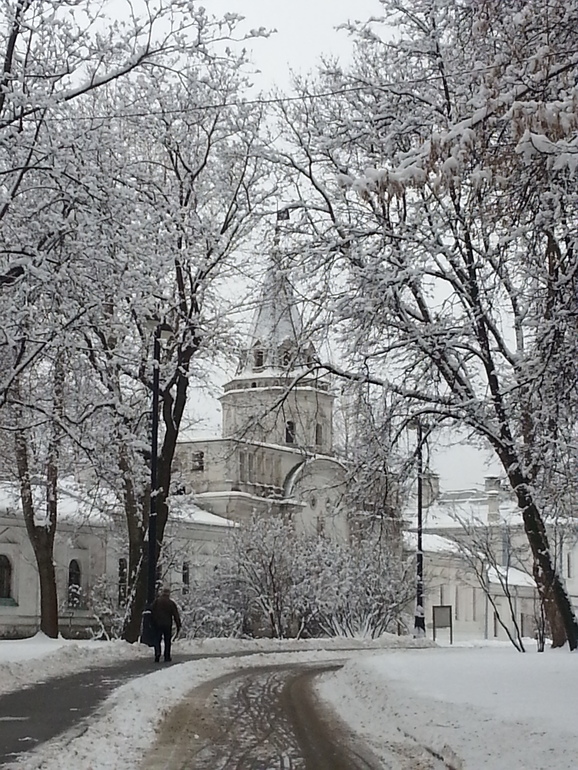 Долго выглядывала на улицу, собиралась с духом. И все же пошли! Раз перетерпели шквалистый ветер в субботу, то и это не помешает. Уж очень захотелось мне удивить сына первым снегом!