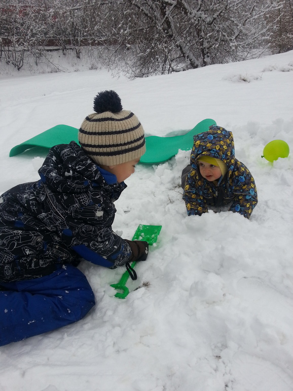Получилось! Даже постоял на нем и потрогал снег, и облизать дала. Дима был поражён, что снег холодный!!! Как я люблю эмоцим на его лице от чего-то нового!