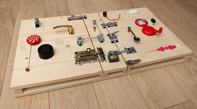 Если в вашем доме есть кладовка или антресоли, забитые всякими ненужными штуками, которые можно вертеть, крутить и щелкать, не держите это добро под замком, а вместе с замками прикручивайте к busyboard или развивающей доске. Что это такое - трудно объяснить, проще показать.