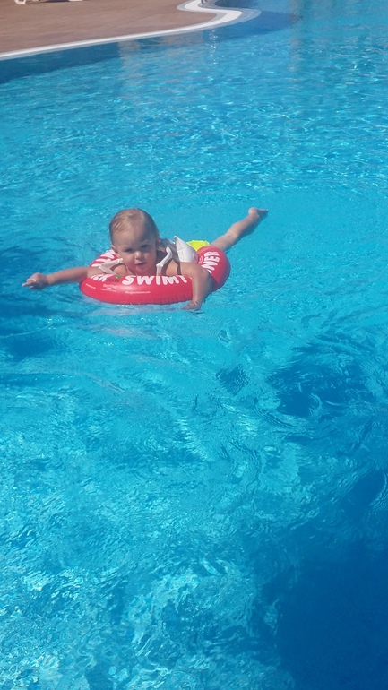 2 недели отпуска пролетели мигом, хоть мы конечно очень скучали по папе! Варя перестала бояться моря и ее теперь не вытащить из воды! Обожает купаться в круге swimtrainer, в бассейн прыгает с ним, сидя на бортике.