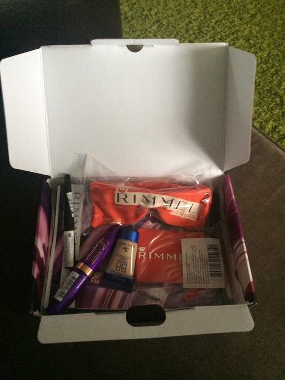 В составе тушь , ВВ крем, жидкая подводка, клёвые солнечные очки и журнал с наклейками и конечно подарки для 5-ти подруг от RIMMEL!