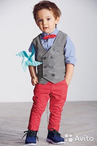 Комплект: рубашка, жилетка и бабочка фирмы Next. Размер 12-18 мес.(86 см) Идеальный вариант на годовасие. Одели один раз на фотосессию. Покупали за 1800. К комплекту есть брюки испанской фирмы Mayoral, цена 1000руб. Все одето 1 раз.