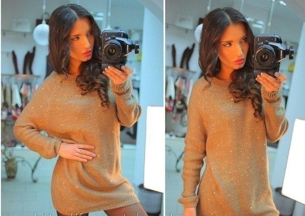 Очень стильная, сзади интересный вырез,красивый цвет, можно спускать одно плечо. Размер универсальный (одевала 2 раза будучи беременной). Хорошо и не беременным (мой размер 44), с лосинами идеально! 1300р.