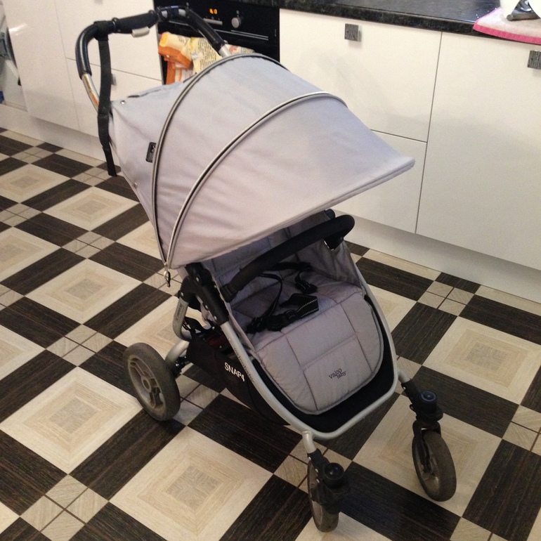 В комплекте дождевик, москитная сетка, матрасик, накидка на ножки. Изо дефектов- треснул по на ручке