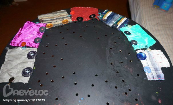 Идею подсмотрела вот здесь http://krokotak.com. Делали из самозастывающей массы для лепки. К сожалению сам процесс обведения ладошки и ковыряния зубочисткой в массе не засняли - все были учумзанные. сегодня наконец-таки Кирюша расскрасил, все сам. Я только лаком покрыла. Вот что получилось