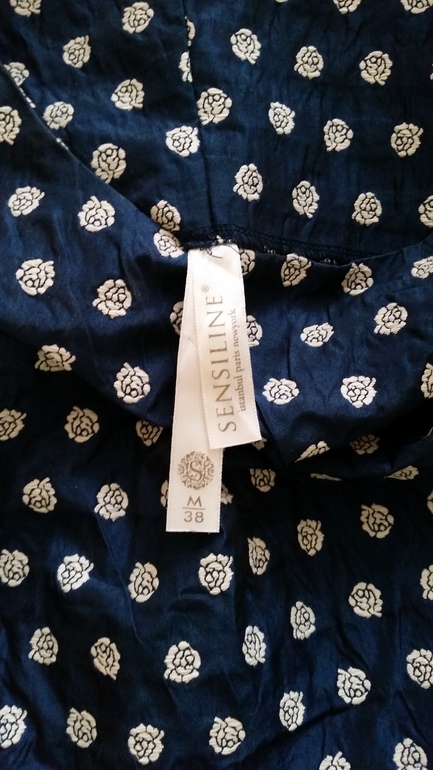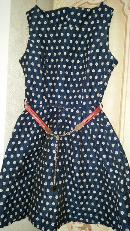 Новое, очень красивое платье, нарядное, но можно и на каж.день. плотная ткань темно-синего цвета с переливом, вышитое розочками. Длина от талии 47см. Размер 42-44. Цена 1700р.