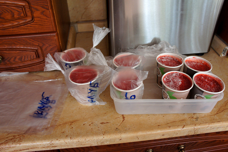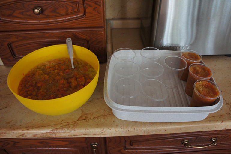 Я так сегодня перцы заготовила. Помыла, почистила, прокрутила через мясорубку, разложила в одноразовые стаканчики и в морозилку.