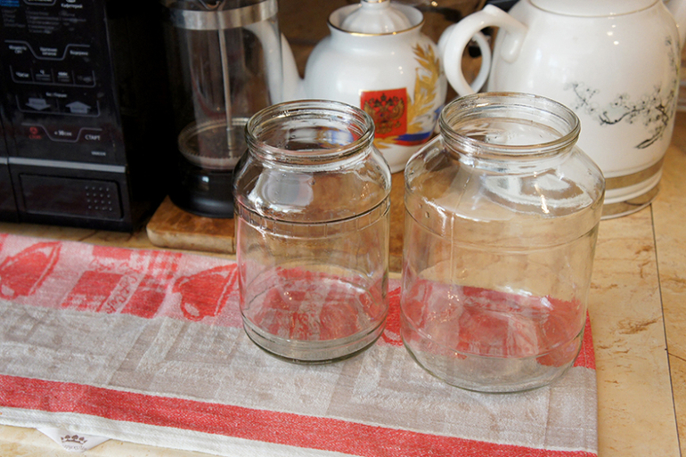 Моем банки в мыльной воде (я с фери мою) и ставим вверх дном на чистое полотенце.