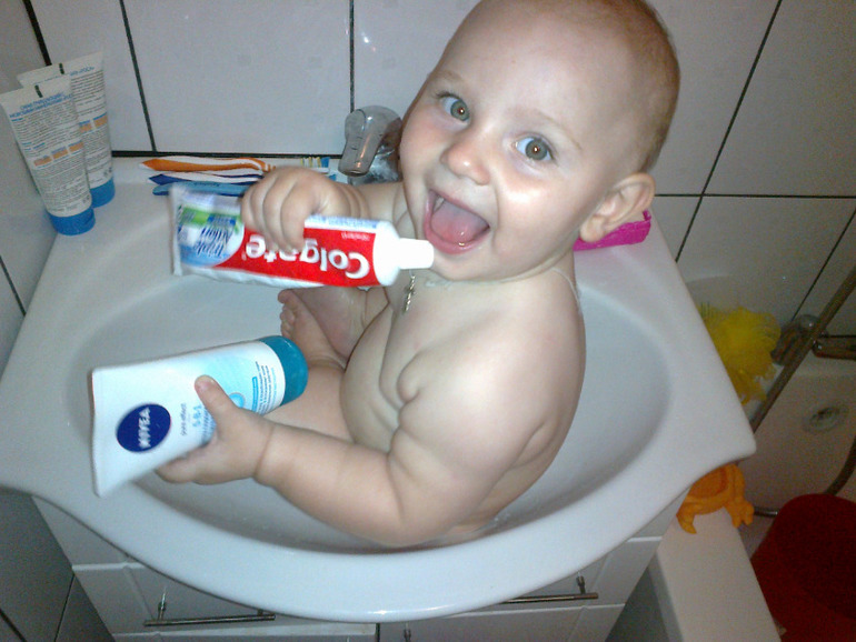 Стоим и ходим самостоятельно держась за все подручное, стены диваны, шкафы, ползаем со скоростью звука, сметая на пути своем все под ряд, СИДИМ - наконец то мы сели, но сидим мы ровно 5 сек, а дальше в при прыжку вершить дела!!!У нас 4 зЮба и всегда улыбка на лице.