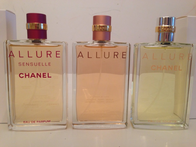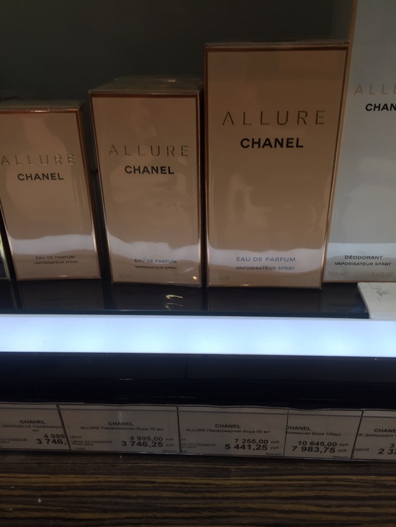 Шанель Аллюр туалетка 100 мл 3500; Шанель Аллюр Парфюм 100 мл 4100; Шанель Аллюр Сенсуаль Парфюм 100 мл4100