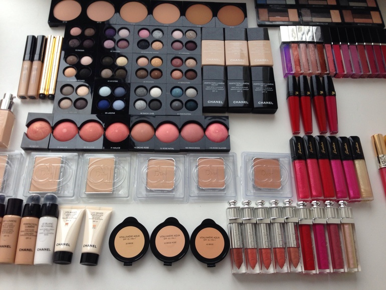 Блески 1200 р, тени Шанель 1500, румяна Шанель 2100, тон крема 1700; компактная пудра,крнем-пудра Шанель 1600, пудра Диор 1200р ,корректок Шанеь и YSL, Герлен , Шанель все по 1200Шанель тени 4-х цветные 2200