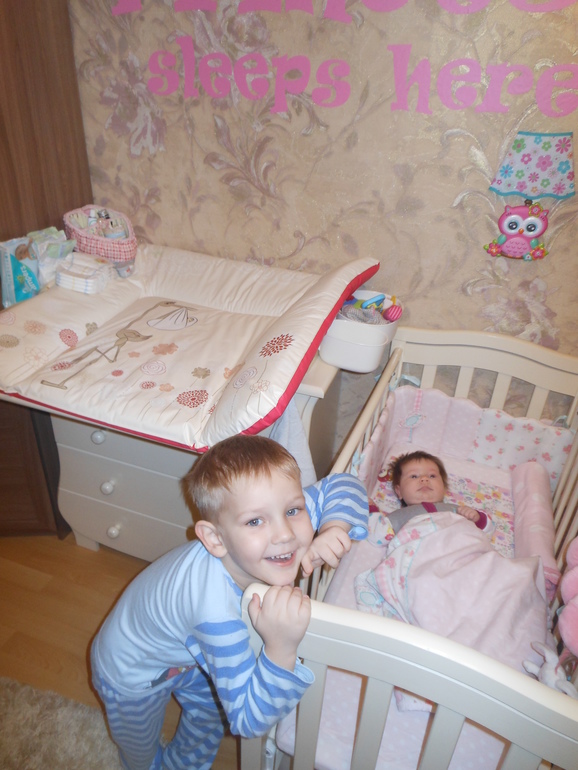 Буквально вчера нам стукнуло полгода. И переехали мы из люльки в кроватку. Поэтому снова были приятные хлопоты- выбор, покупка, перестановка мебели, наведение красоты)