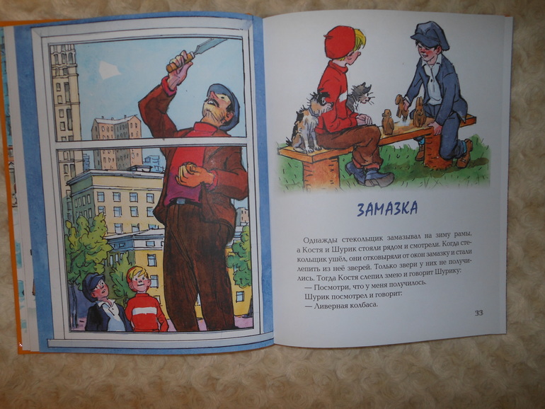 Читаем с удовольствием уже дано. Любимый рассказ- "Замазка". Макс хохочет)))