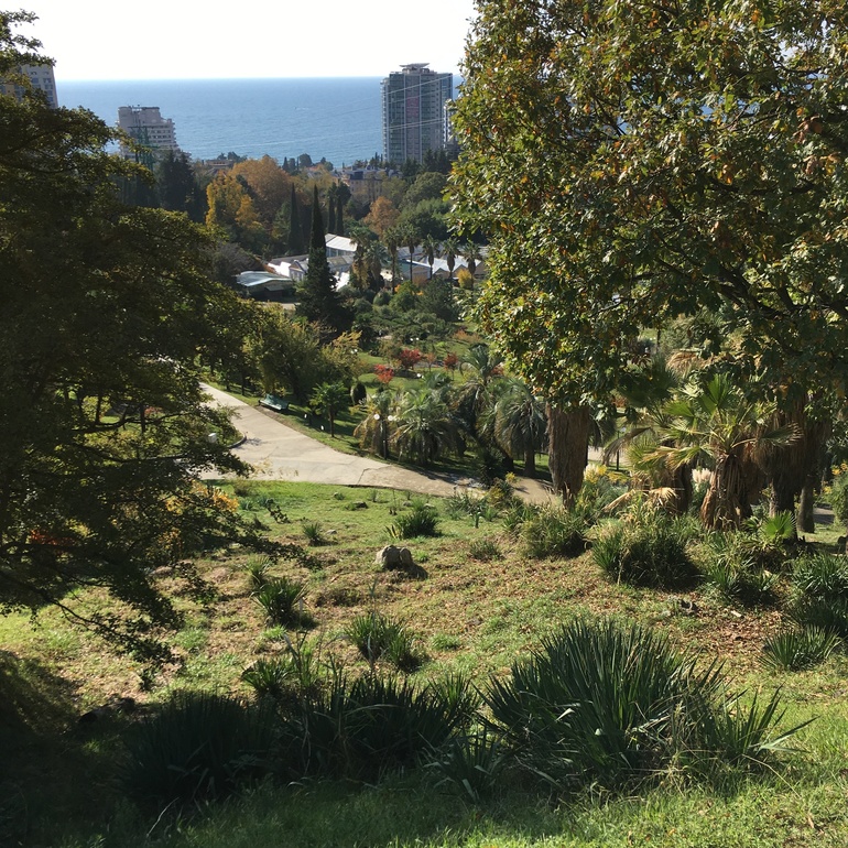 В итоге в Сочи мы поехали на такси. Погулять решили в Дендрарии. Мы совсем не оригинальны- поднялись в Верхний парк на фоникулере, а потом уже спускались вниз.