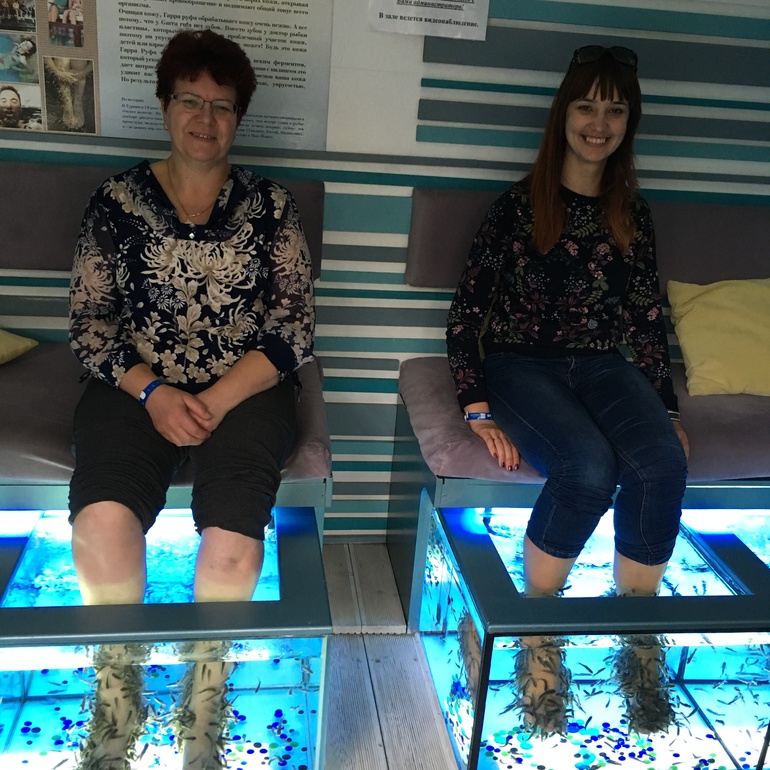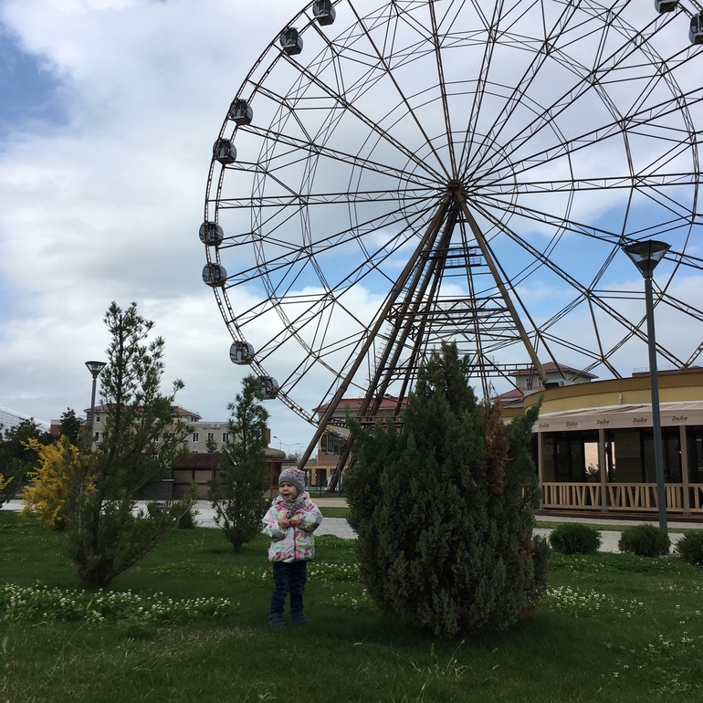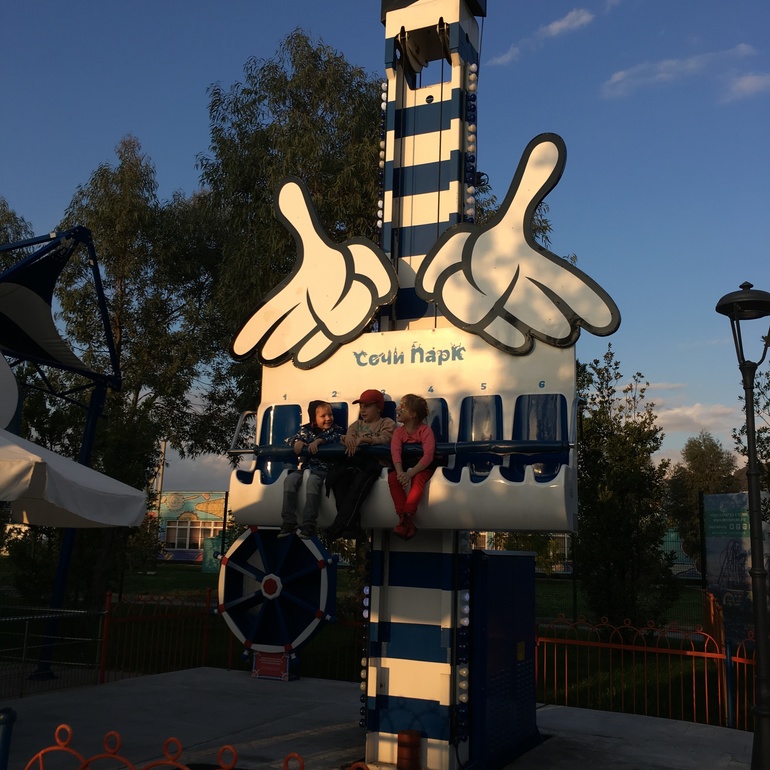 У детей, конечно, глаза вспыхнули) Но все это не входило в наши планы. Ограничились колесом обозрения, пилингом рыбками и мороженным) Прогулялись, поиграли на бесплатной детской площадке