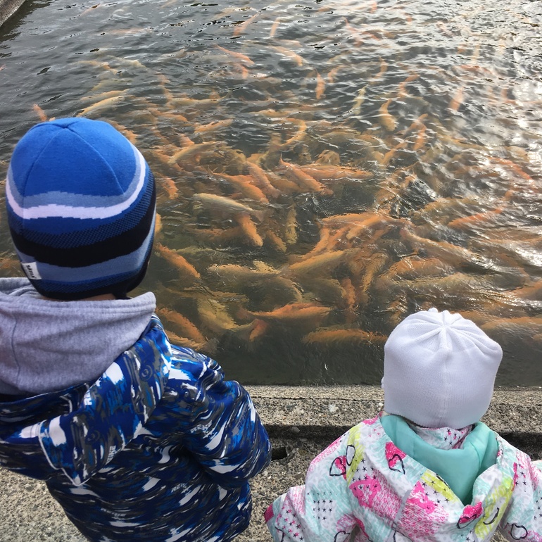 Конечно, покормили рыб и загадали желания))) Максим был просто в восторге!!