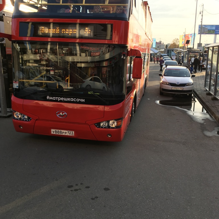 Изначально хотели поехать на экскурсионном двухэтажном автобусе. Он отправляется от Богатыря. Но расписание неожиданно поменялось, хотя на сайте все осталось по прежнему. Хорошо, что я догадалась позвонить.