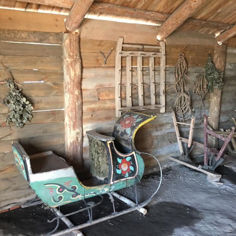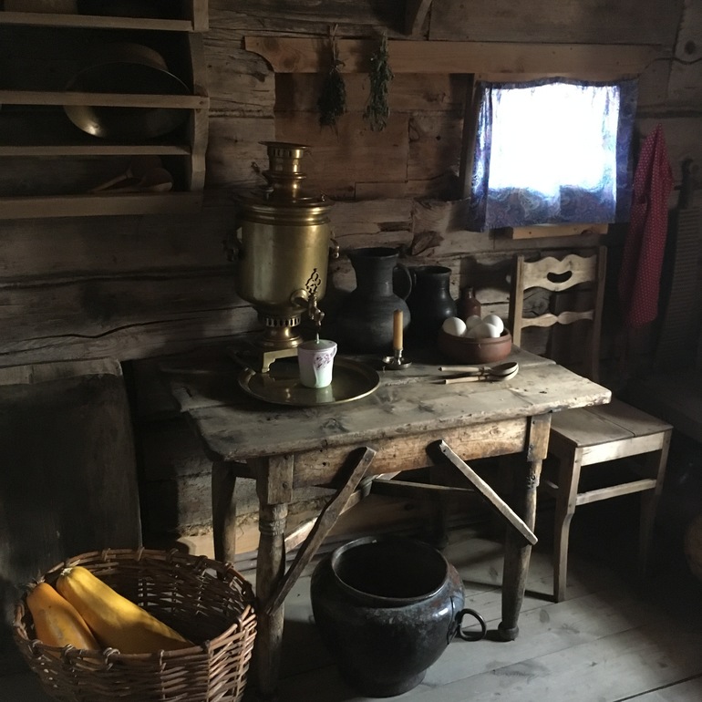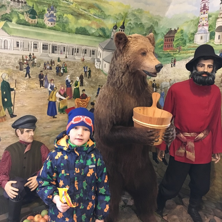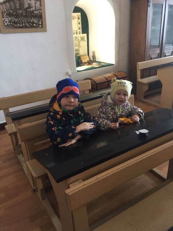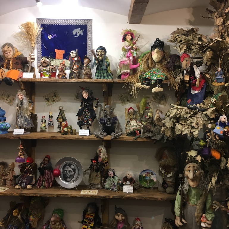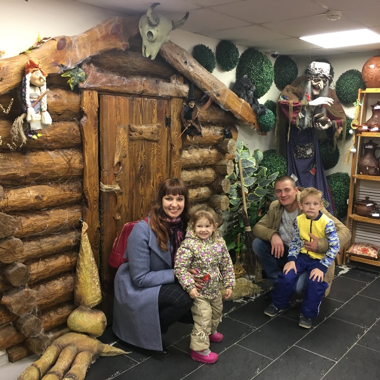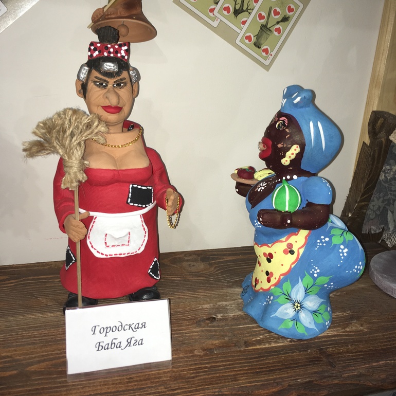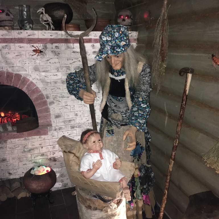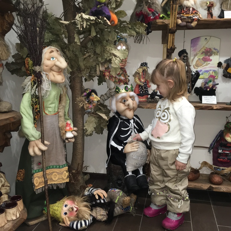 Увести детей было непросто. Выманили их только пообещав, что пойдём в гости к Бабе-Яге. И не обманули) Прямо напротив кафе есть небольшой интерактивный музей.