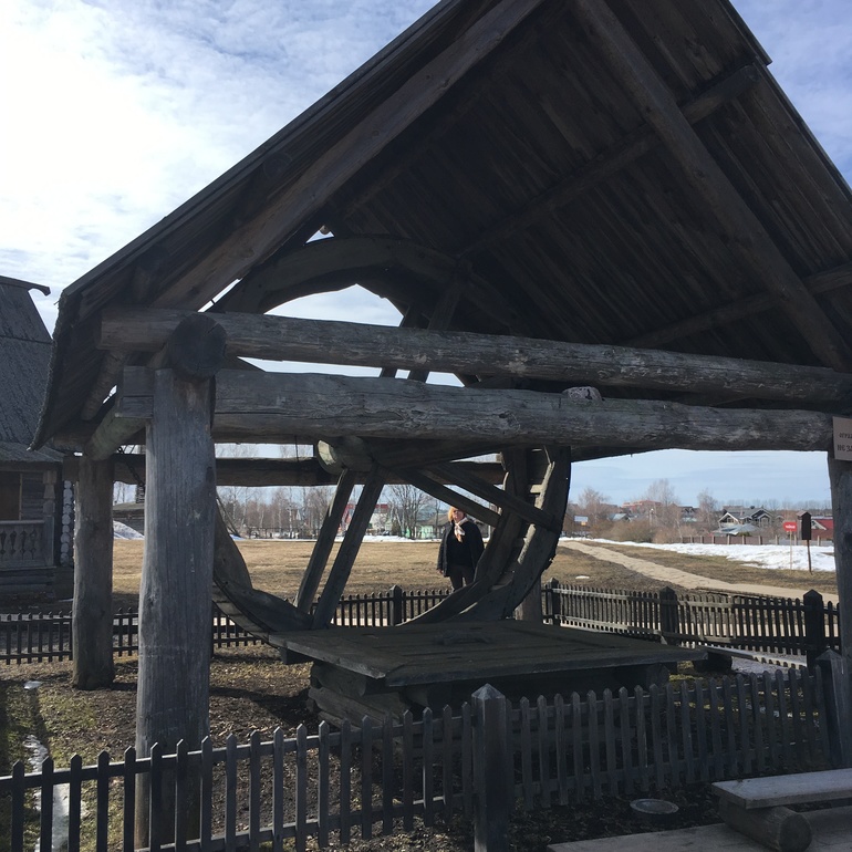 От Кремля, по мосточку через реку можно дойти до Музея деревянного зодчества. Мы уже были в подобном в Костроме. Суздальский компактнее, кажется, экспозиции побогаче. Хорошо тут