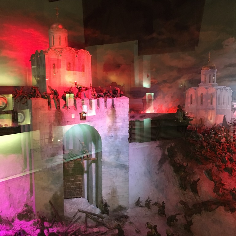 Основательно позавтракав (завтраки в гостинице отличные!), поехали в Золотые ворота. Когда произносишь слово «ворота» представляется уж точно не здание приличных таких размеров) Ранее это был парадный въезд, а сейчас здесь музей. Дети особо внимательно не дают посмотреть экспозицию. Но панорама взятия Ворот ханом Батыем их заинтересовала)))