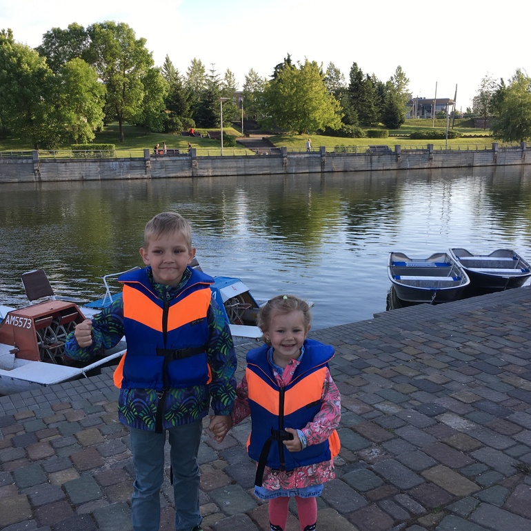 И на этом не успокоились- ещё и с воды нам было надо библиотеку увидеть😀 Жилеты- и вперёд, кататься на катамаране.