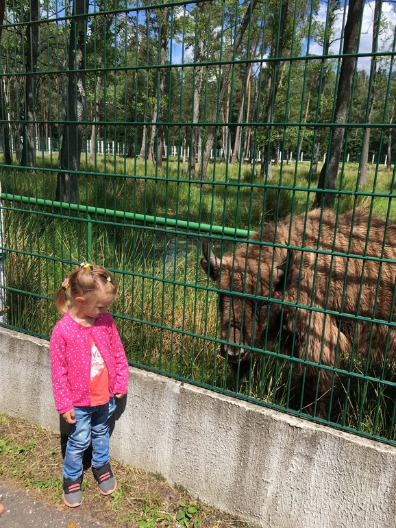 Надо сказать, в кассе мы сразу купили билеты в вольеры к животным. Поэтому водитель автобуса высадил нас там и мы пошли искать зубров)