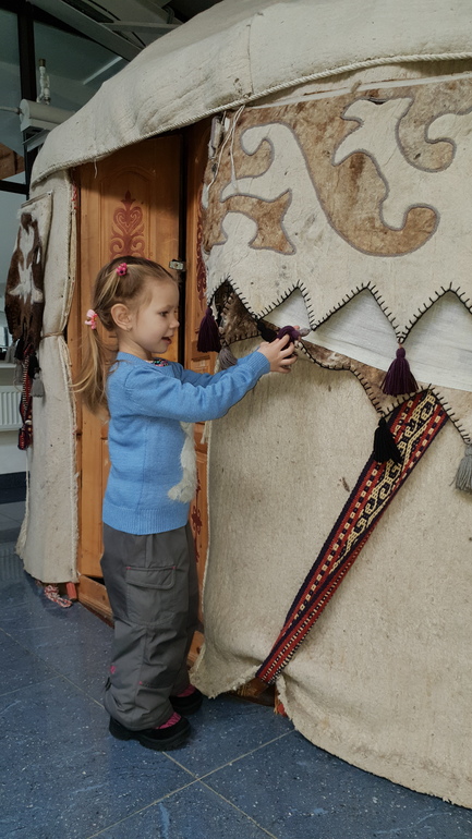 На втором этаже разместились 2 юрты- монгольская и киргизская.