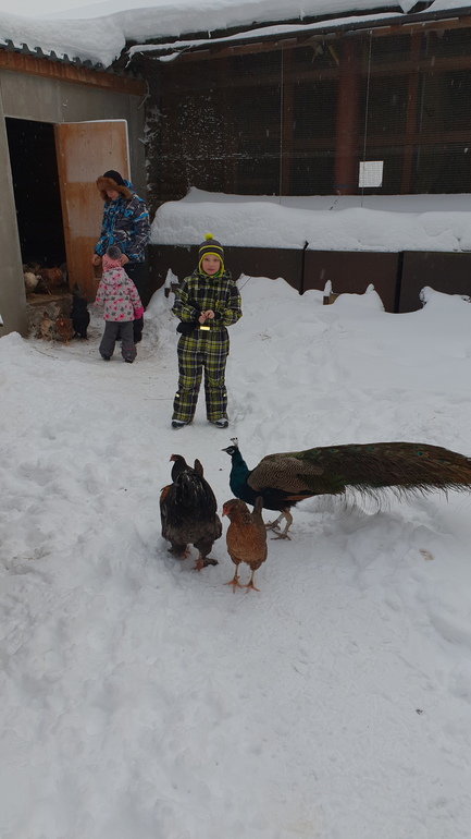 Рядом находится эко-ферма. Посещение платное. Фазан, павлины, курочки красивые, кролики.. И корова с 3хмесячным теленком)