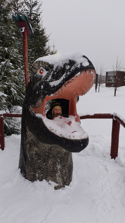 Мимо ДиноПарка кое-как провели детей, пообещав им питомник хаски)