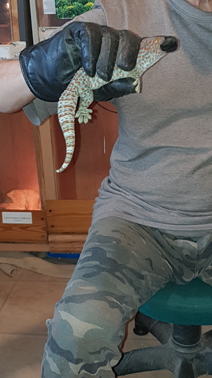 А геккона доставили из аквариума в резиновых перчатках- кусается, шипит.