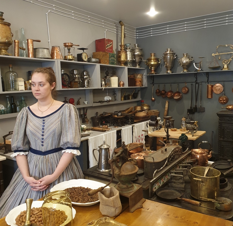 Уже при входе понимаешь, что будет интересно) Барышня за прилавком в нарядном платье, тематическое оформление, антикварные штучки, букинистика... здорово! Экскурсия тоже отличная!!!