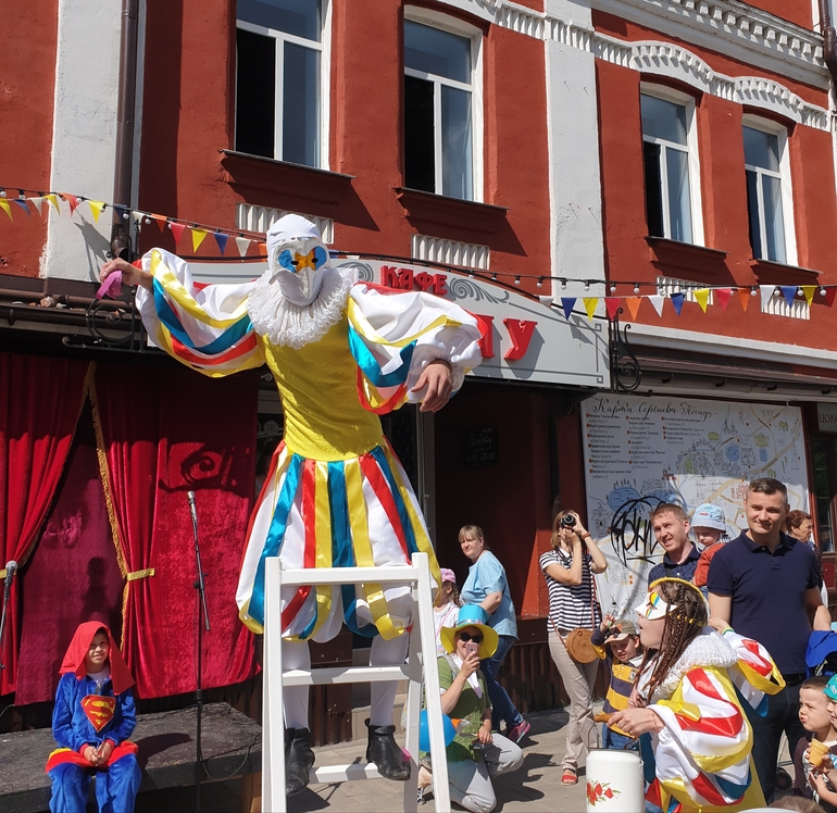 Вот эта улочка, где расположена Кухмистерская, была очень праздничная 1го июня. Множество бесплатных мастер-классов, фотозон, мороженое в обмен на рисунок), шары, тархун, сцена с артистами, клоунами. Здесь мы незапланированно задержались- детей невозможно было увести)