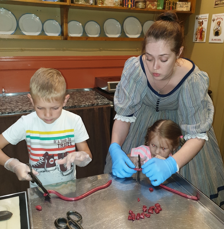 А ещё мы делали ландрины- это такие леденцы. Сами размешали, сами раскатали, сами нарезали ножницами, сами съели потом)))