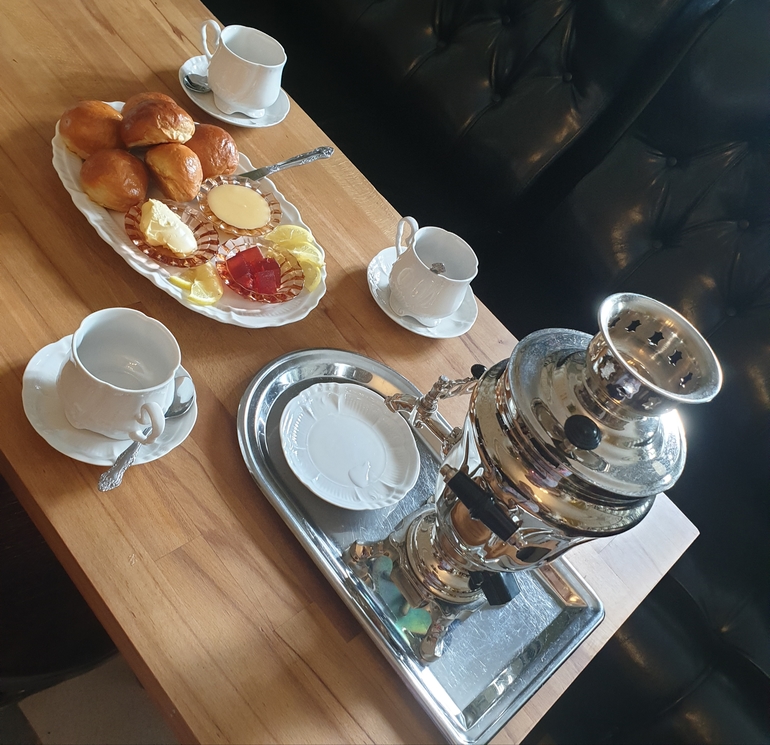 Примерно минут 40 длилась наша экскурсия. И завершилась чаепитием в кафе при музее. Свежие булочки, масло, мёд, мармелад, чай из самовара... ну замечательно просто!