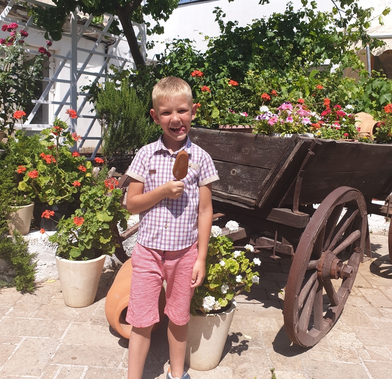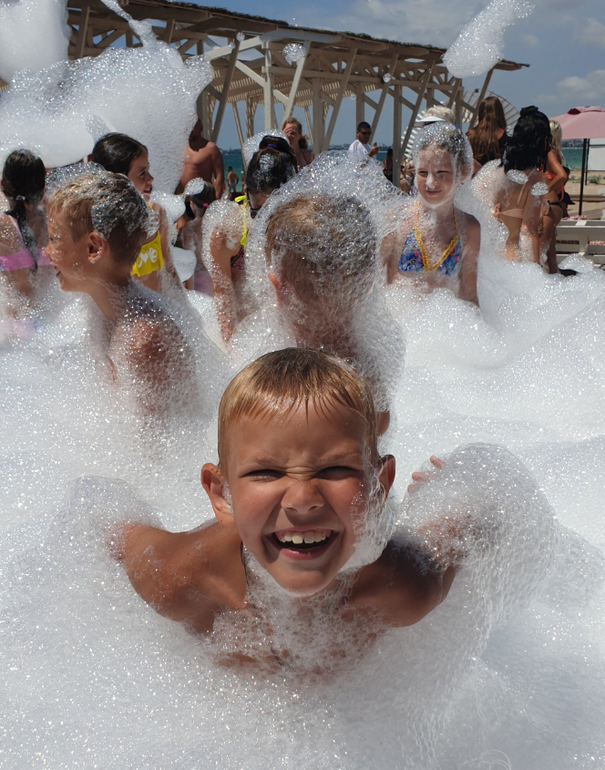 Много солнца, разные пляжи, дельфинарий, парк Крым в миниатюре с контактным зоопарком и фигурами мультгероев, прогулки по набережной, экскурсия в синагогу, походы в театр, пенные вечеринки, просмотр фильмов под открытым небом, машинки и батуты, варёная кукуруза, шашлык и даже устриц я попробовала))) Все описывать не буду- просто мильон фото)