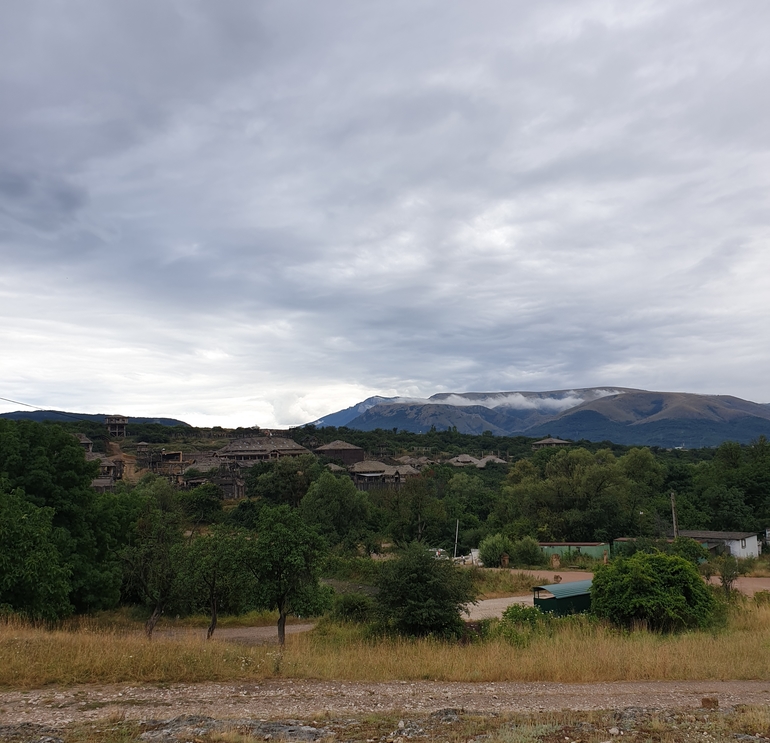 Дорога километра 1,5-2 в гору, местами сносная, местами не очень) Нам ещё с погодой повезло- дождик поливал)