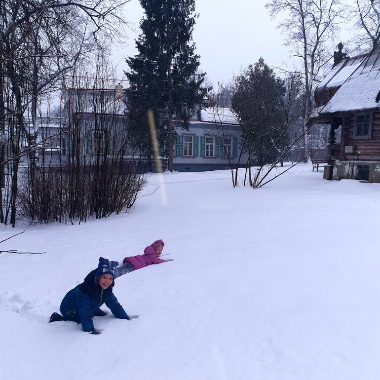 Ну и погулять после обеда поехали в Абрамцево. Просто созерцали, валялись в снегу, катались с горки.