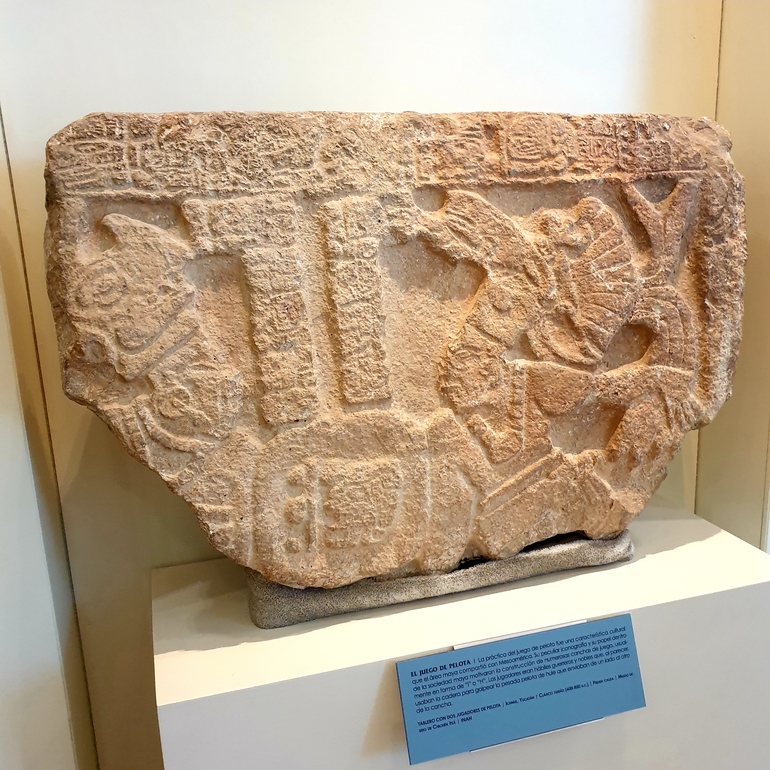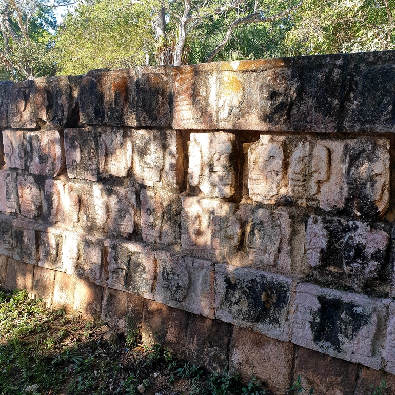 Очень необычное место- площадка для игры в мяч тлачтли. Игра проходила между двух высоких наклонных каменных стен. На каждой стене висело кольцо с изображением Кукулькана. Мяч забрасывать бёдрами и локтями. Последнее время учёные придерживаются мнения, что наградой победителю была смерть- высшее благо по мнению Майя.