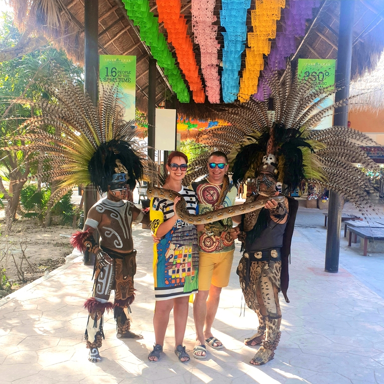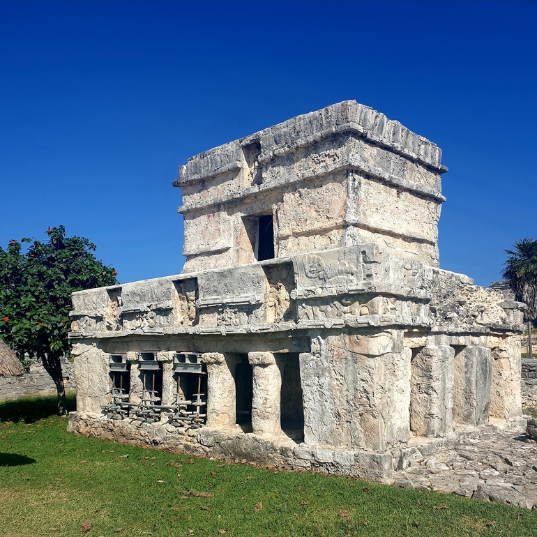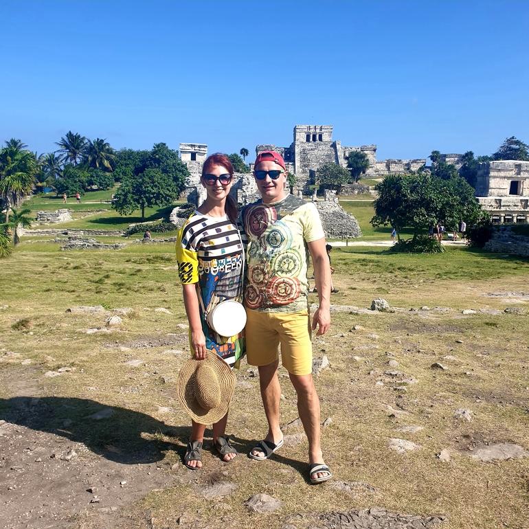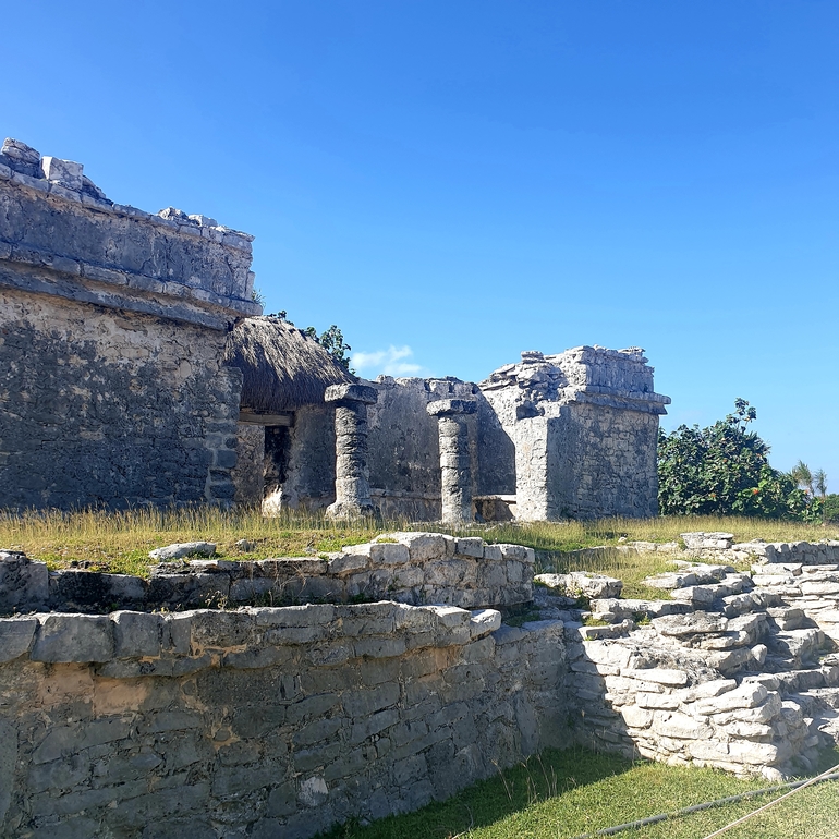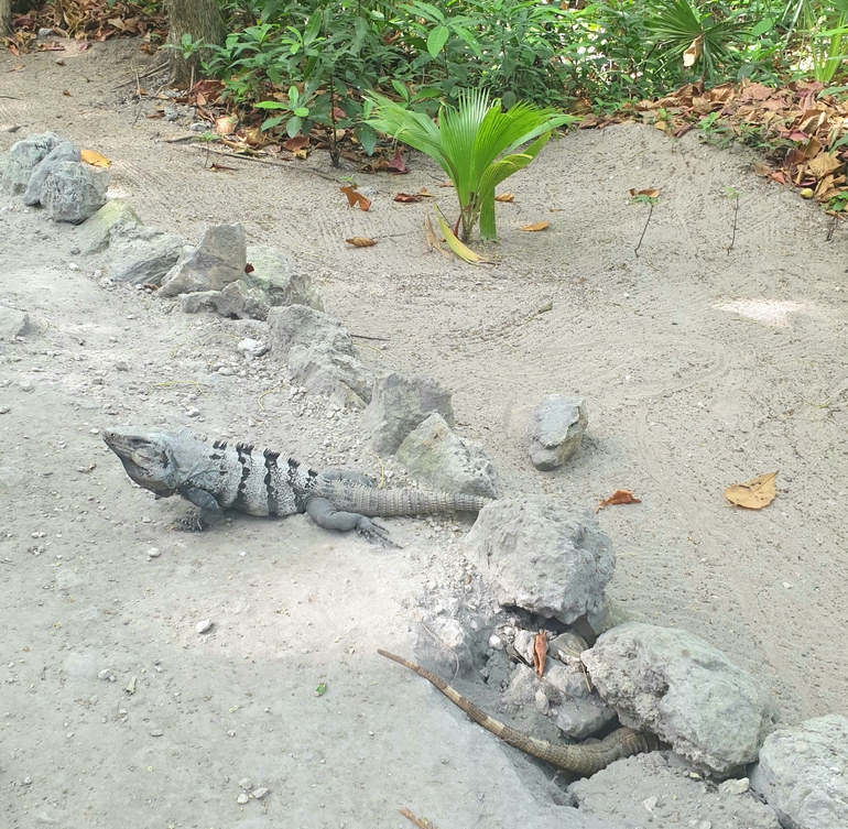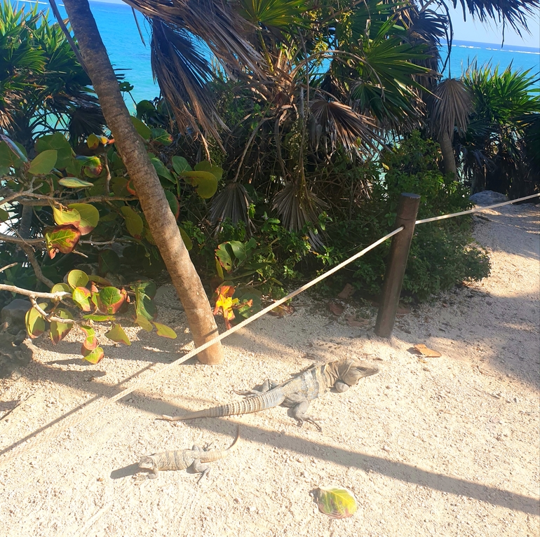 И ещё один древний город- Тулум. Он единственный находится на побережье и обнесен стеной. Город относительно небольшой, обошли его вдоль и поперёк. Город был портовым. Был захвачен испанцами