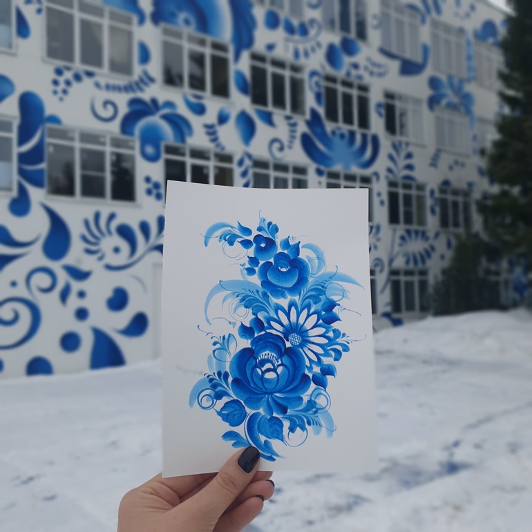Эту красоту нам написала за 5 минут художник на мастер-классе. Лёгкие движения, всего 1 краска- синяя.. кажется, как легко.. Но берём кисточку сами- вообще не то получается😬