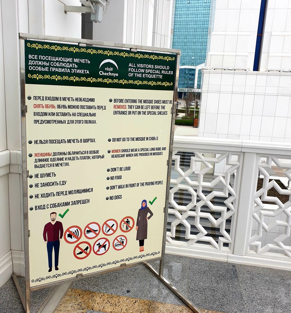 Вход отдельный для мужчин и женщин, бабушка-чеченка помогает одеть абайю и платок)) Я показывала в Инстаграмм. Разрешение на съемку я, кстати, спросила. Она улыбнулась и едва заметно кивнула головой