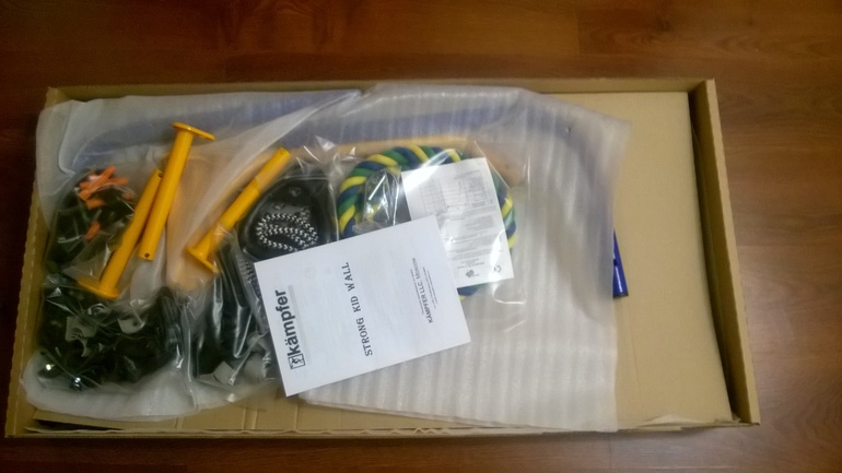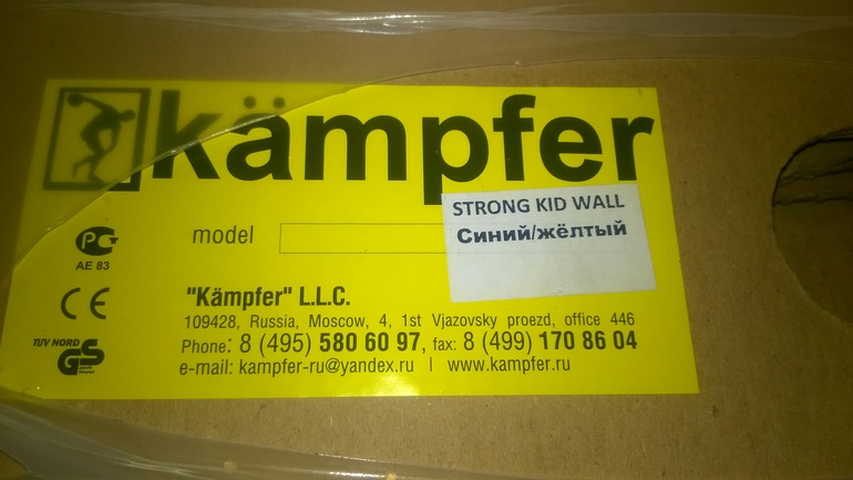 Конструкция выглядит внушительно и надёжно, краска вполне качественная. К стене прикручивается здоровенными винтами, в шести местах. Кстати есть вариант в распор между потолком и полом Kampfer Strong kid ceiling, но мы планируем подвесной потолок.