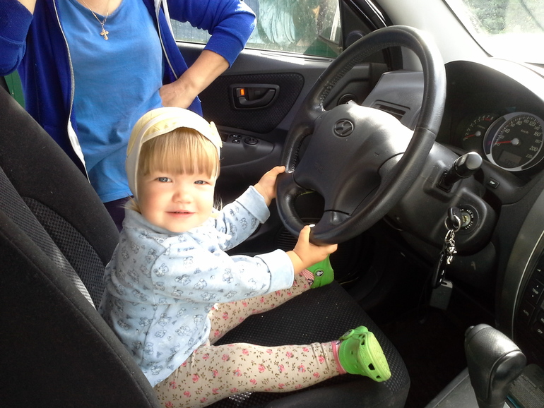 Опять челка в глаза полезла! Снова пришлось идти стричь! На этот раз ни бигудя не помогла, ни мультики, ни весь штат работников! Отрезали только половину :-) так и гуляли красивые, пока не уснула! Тут бабушке пришлось подключиться! Я ногти, она челку... вот так и живем!