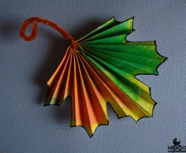 Нашла на просторах соц.сетей замечательную поделку для деток - кленовый лист из бумаги. Очень просто и красиво.